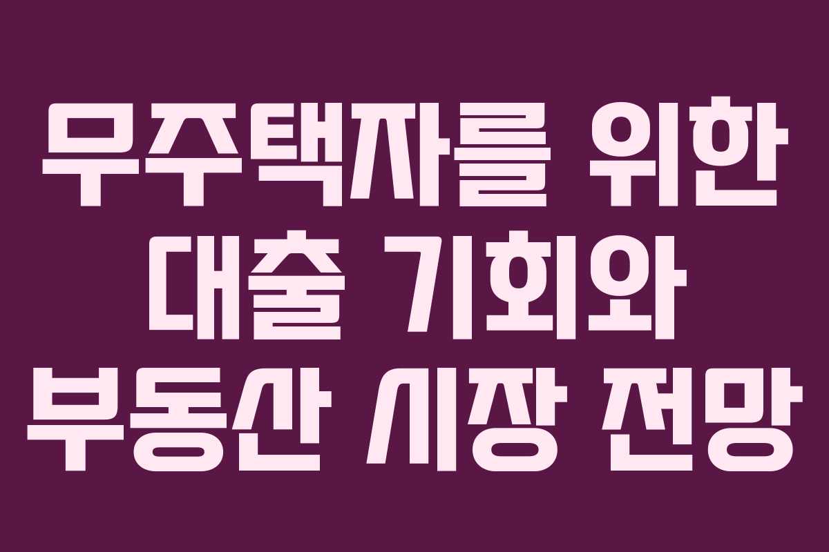 대출 규제가 완화되면 무주택자들이 주택 구매를 적극적으로 고려하게 되어 부동산 시장이 활성화될 수 있습니다.