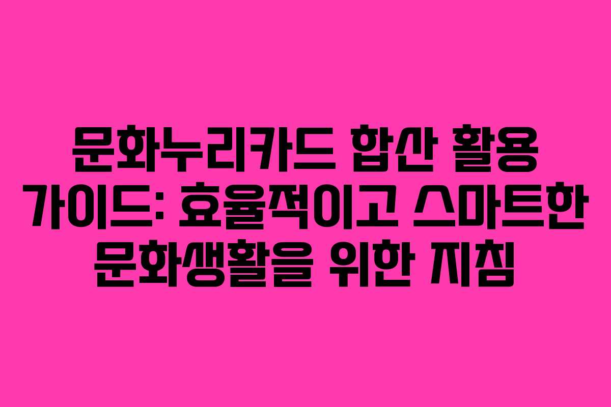 결론적으로, 문화누리카드 합산은 사용자의 편의성과 효율성을 높이는 매우 유용한 기능입니다. 가족이나 지인과 함께 카드를 합산하여 더 큰 문화적 경험을 누릴 수 있습니다. 이 가이드를 통해 스마트하고 즐거운 문화생활을 시작해 보세요.