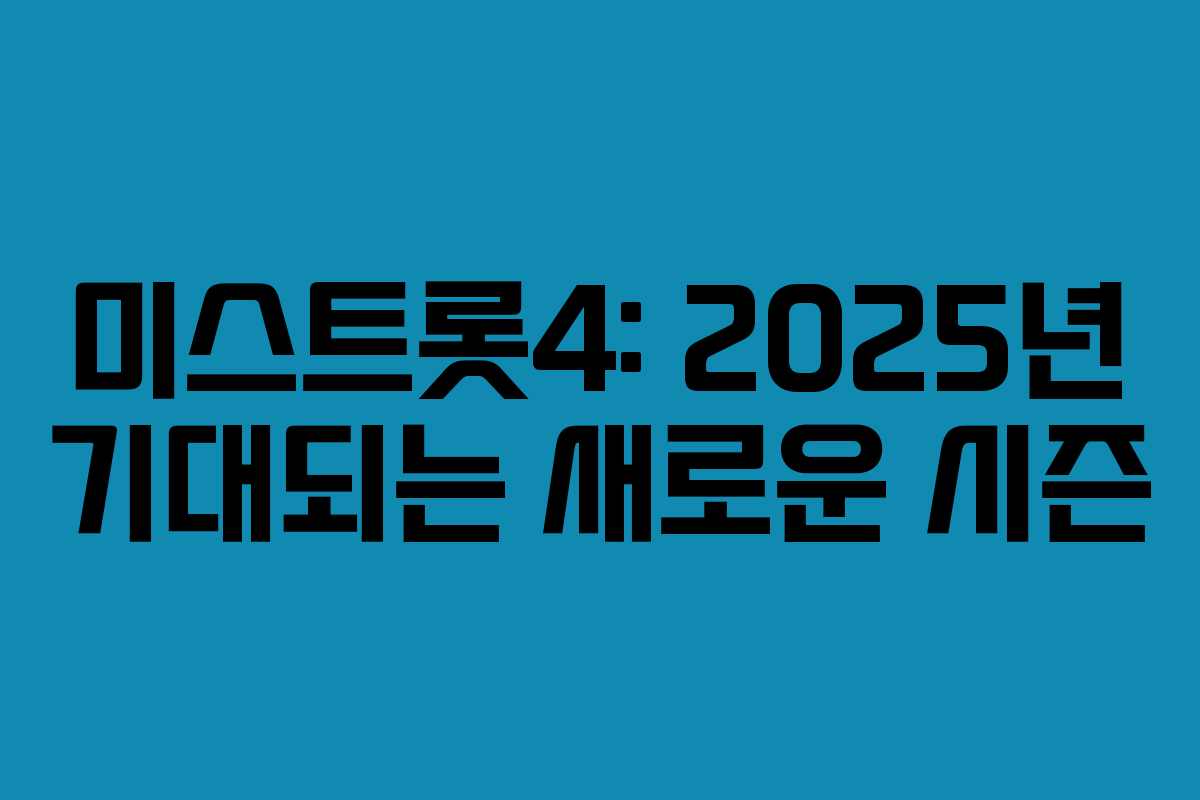 트롯 팬들이 기다려온 미스트롯4가 드디어 방송을 앞두고 있습니다. 이번 시즌은 참가자들의 열정과 경쟁이 돋보일 것으로 예상되며, 다양한 정보와 함께 방송 일정, 참가자 모집, 시즌 콘셉트 등을 알아보겠습니다.
