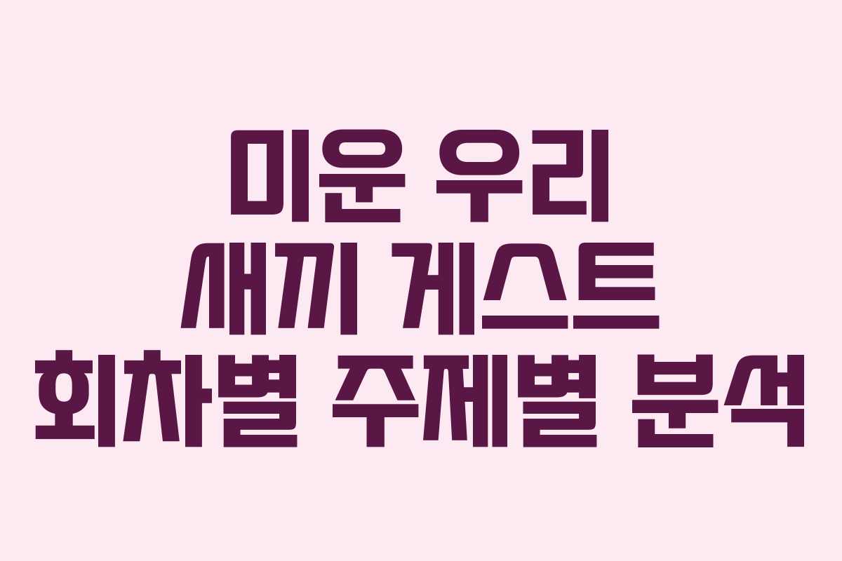 저는 2026년 기준으로 미운 우리 새끼가 평균 12% 이상의 시청률을 기록하고 있다는 사실에 놀랐습니다. 이는 예능 프로그램의 경쟁이 치열한 가운데서도 꾸준한 인기를 유지하고 있다는 것을 보여줍니다. 프로그램의 성공은 게스트들이 가진 다양한 이야기와 그 이야기를 풀어내는 방식에 크게 의존하고 있습니다.