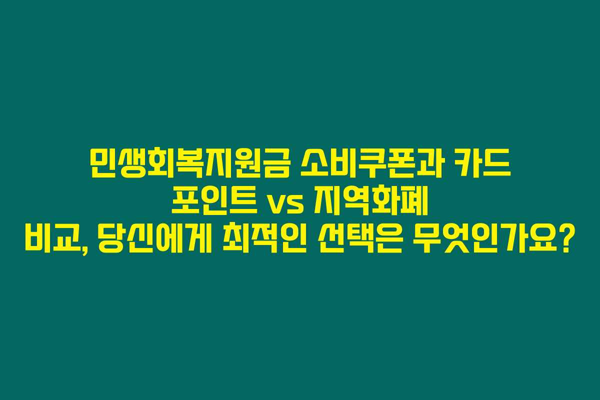 소비쿠폰과 카드 포인트, 지역화폐 중 어느 것이 가장 좋을까요? 각자의 소비 스타일에 따라 다를 것 같아요.
