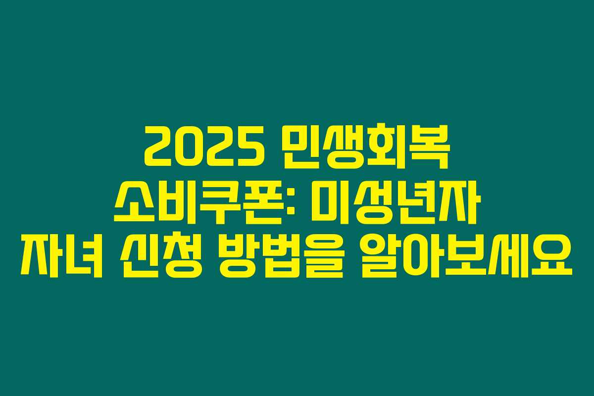2025년 민생회복 소비쿠폰은 많은 가정에 혜택을 줄 수 있는 중요한 정책입니다. 특히, 미성년자 포함 지급 기준에 대해 알아보겠습니다.