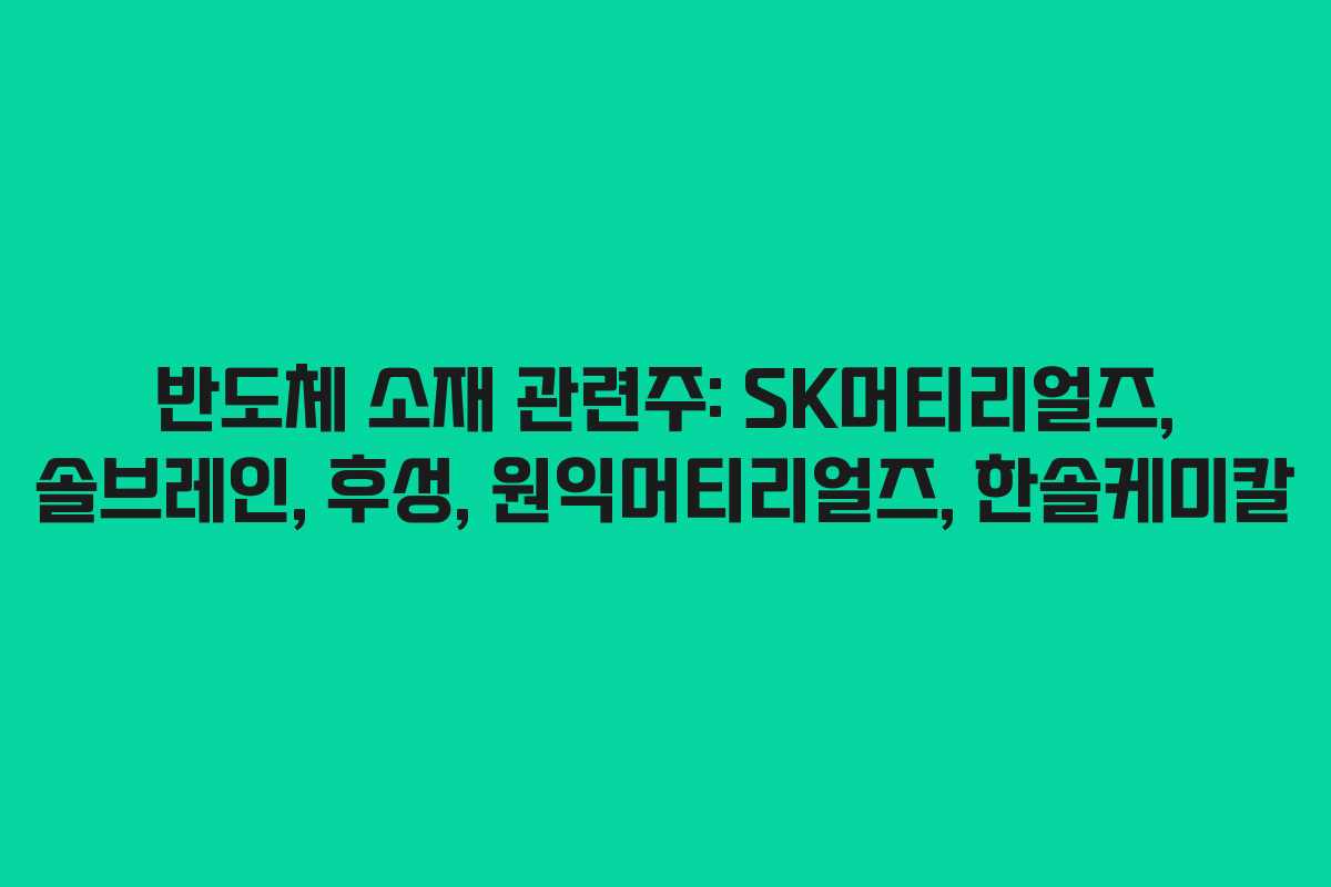 반도체 산업의 성장과 함께 소재 관련 기업들의 중요성이 증가하고 있습니다. 이번 글에서는 SK머티리얼즈, 솔브레인, 후성, 원익머티리얼즈, 한솔케미칼 등 주요 반도체 소재 관련주에 대해 소개합니다.