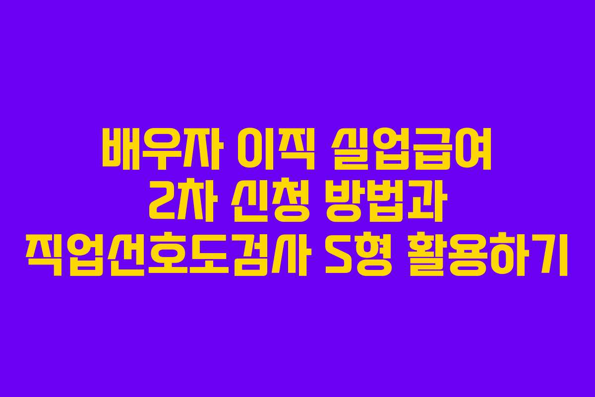 배우자의 이직으로 인해 실업급여를 신청하는 과정은 복잡할 수 있지만, 올바른 정보를 통해 쉽게 해결할 수 있습니다. 이번 글에서는 실업급여 2차 신청 방법과 직업선호도검사 S형을 활용하는 방법을 소개합니다.