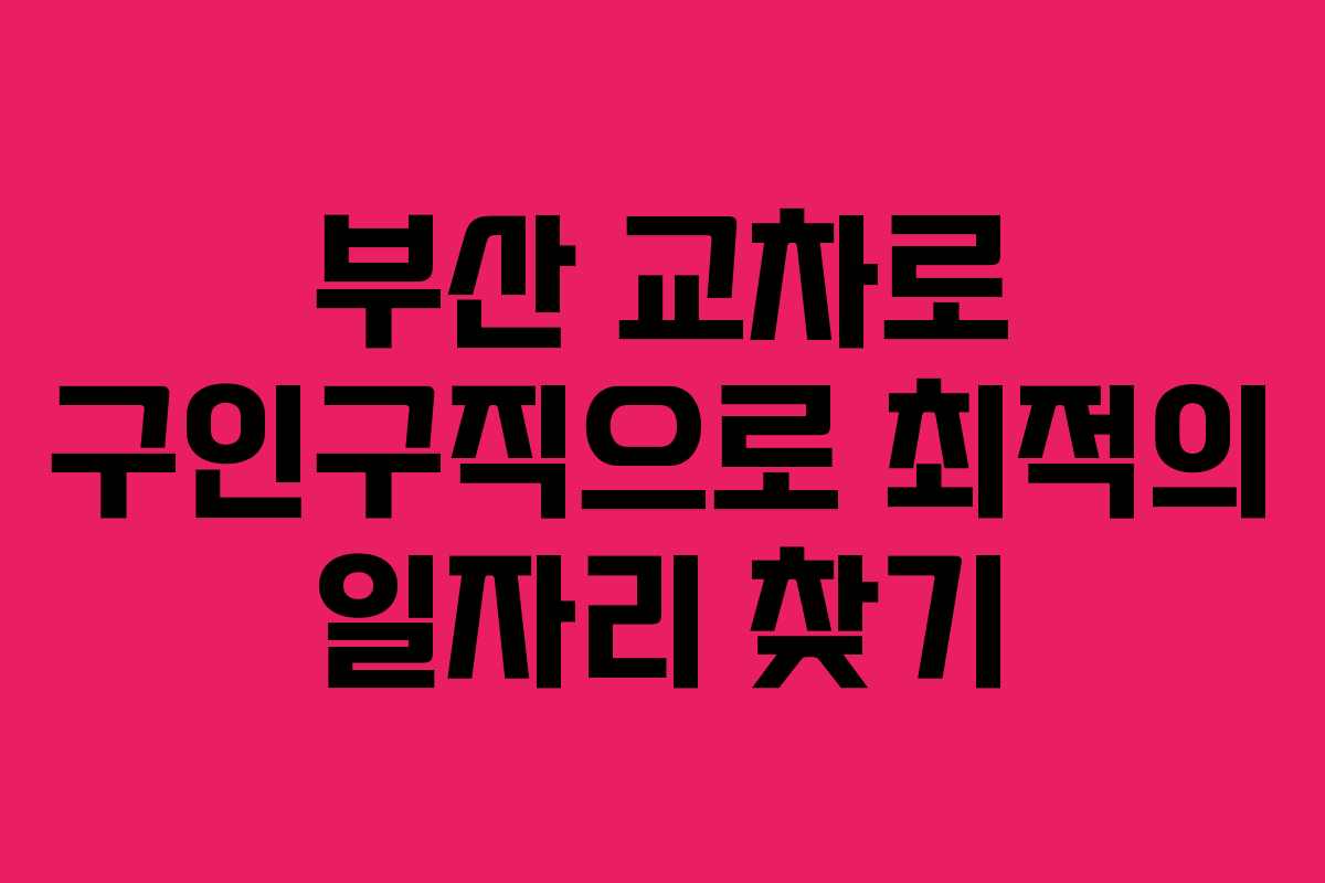 부산 교차로 구인구직은 부산 지역에서 일자리를 구하는 이들에게 필수적인 정보의 플랫폼입니다. 이곳은 구직자들이 원하는 직종이나 조건에 맞춰 쉽게 일자리를 찾아내는 데 도움을 줍니다. 특히 지역 특성에 맞춘 다양한 직종이 등록되어 있어 많은 사람들이 유익한 정보를 얻을 수 있습니다.