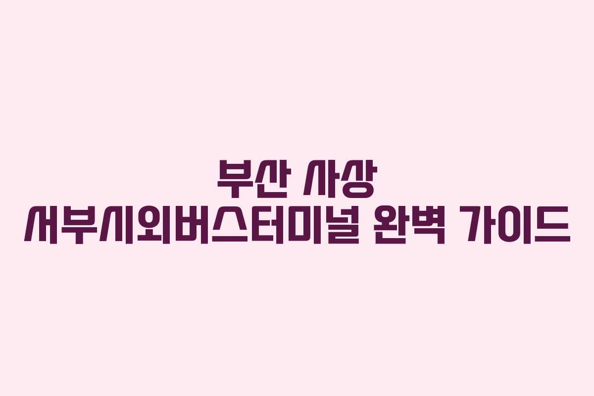 부산 사상 서부시외버스터미널은 부산의 주요 교통 허브 중 하나로, 다양한 노선과 편의시설을 갖추고 있습니다. 이곳을 이용하는 여행객들에게 유용한 정보와 최신 시설을 소개합니다.