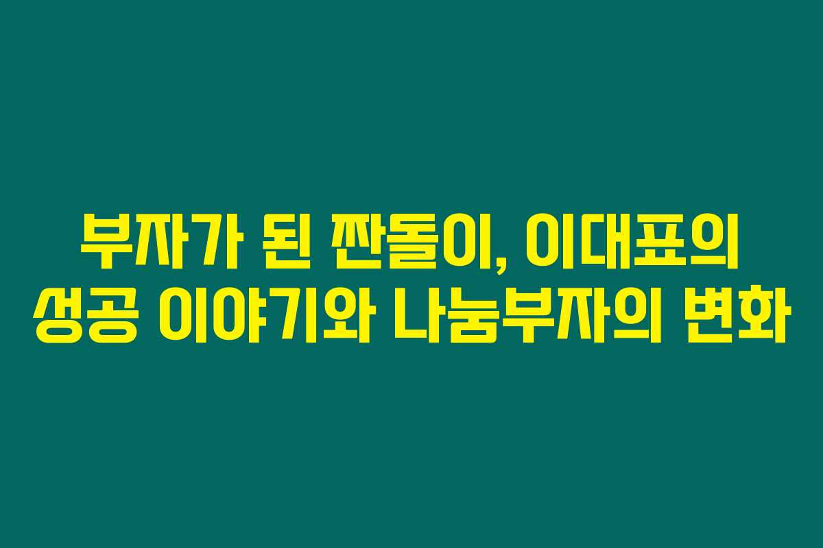 부자가 된 짠돌이, 이대표의 성공 이야기와 나눔부자의 변화