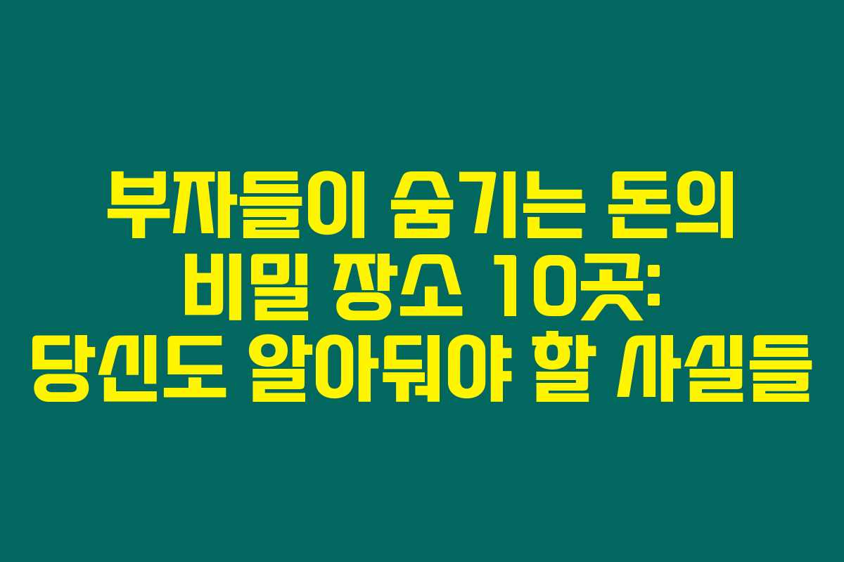 돈이 있는 사람들은 세금 문제를 피하고 자신의 재산을 보호하려고 다양한 방법을 모색하죠. 부자들이 돈을 숨기는 비밀 장소가 궁금하다면 아래에서 확인해보세요. 여기서 다루는 내용들은 결코 불법적인 것뿐만 아니라 합법적인 방법들이니 참고해보시면 좋겠어요.