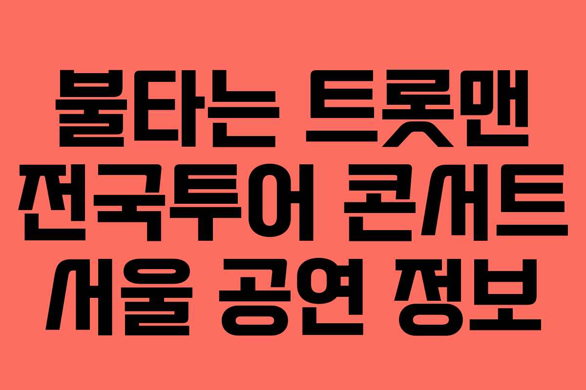 불타는 트롯맨 전국투어 콘서트가 서울에서 개최됩니다. 본 공연에서는 다양한 매력을 지닌 TOP8 아티스트들이 잊지 못할 추억을 선사할 예정입니다. 이번 글에서는 서울 공연의 자세한 정보와 티켓 예매 방법을 안내해 드리겠습니다.