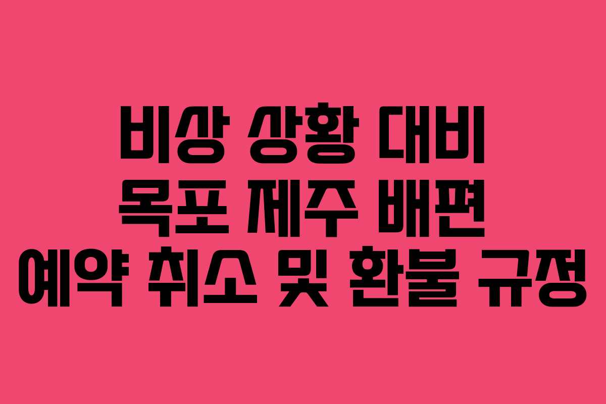 목포에서 제주로의 여정은 단순한 여행을 넘어, 경험 그 자체입니다. 바다의 파도 소리와 함께 떠나는 이 여정에서 느끼는 설렘은 오랫동안 기억에 남을 것입니다. 하지만 여행 계획은 때로 예기치 않은 상황으로 인해 변경될 수 있습니다. 지난 여름, 저는 목포에서 제주로 떠나는 배편을 예약하고 설레는 마음으로 여행을 준비하던 중, 불가피하게 예약을 취소해야 했던 경험이 있습니다. 이번 글에서는 비상 상황 대비 목포 제주 배편 예약 취소 및 환불 규정에 대해 상세히 안내하겠습니다.