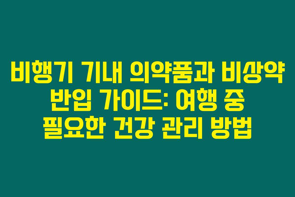 여행을 준비하면서 건강을 잘 관리하는 것이 중요하다는 점 모두 공감하시죠? 제가 직접 경험해본 결과로는 특히 장거리 비행을 위한 비행기 기내 의약품과 비상약은 필수적이랍니다. 그런데 비행기와 공항 보안 규정 때문에 어떤 의약품을 반입할 수 있는지가 혼란스러울 수 있어요. 아래를 읽어보시면 비행 중 필요한 의약품을 효과적으로 준비하고 반입하는 방법에 대해 알아볼 수 있습니다.