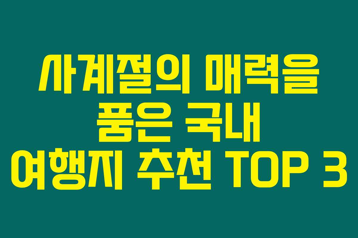부산, 강릉, 그리고 제주도는 각기 다른 매력을 가진 사계절 국내 여행지로 많은 사람들이 사랑하는 곳입니다. 계절이 변화하는 이 시기, 훌쩍 떠나 힐링을 위한 여행을 계획해보세요. 언제나 새로운 경험이 기다리고 있답니다!