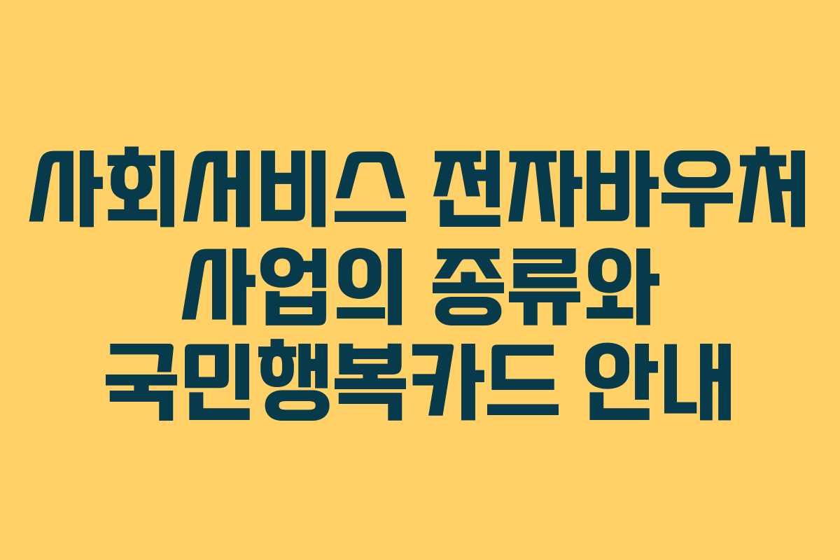사회서비스 전자바우처 사업은 국가가 복지 대상자에게 제공하는 여러 서비스의 이용을 돕기 위해 마련된 제도입니다. 이번 글에서는 이 사업의 주요 내용과 국가바우처의 정의, 그리고 국민행복카드의 사용 방법에 대해 알아보겠습니다.
