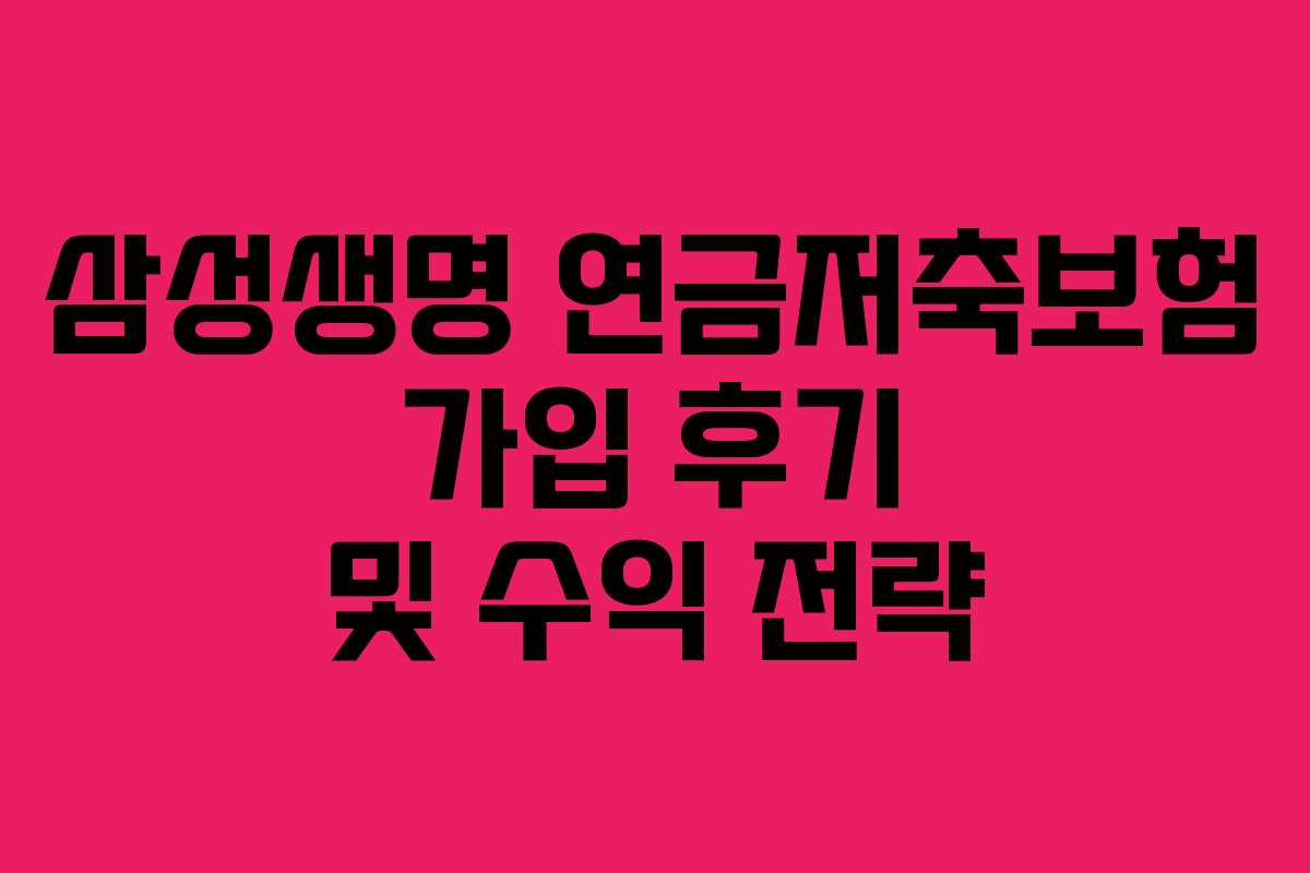 삼성생명에서 제공하는 연금저축보험 상품을 통해 안정적인 투자처를 찾고자 하는 사람들에게 유용한 정보가 될 수 있다. 특히 경제적 여유가 없는 청년층부터 안정적인 노후를 준비하고 싶은 다양한 연령대에게 적합한 선택이 될 수 있다. 본 포스팅은 2026년 기준 최신 정보를 반영하여 연금저축보험에 대한 가입 후기와 수익 전략을 공유하는 내용을 담고 있다.