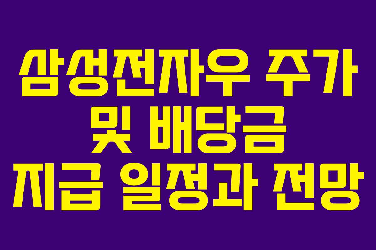 삼성전자는 한국 증시의 대표 기업으로, 최근 주가 변동과 배당금에 대한 관심이 높아지고 있습니다. 이번 글에서는 삼성전자우의 주가 동향, 배당금 지급 일정, 그리고 향후 배당 전망을 살펴보겠습니다.