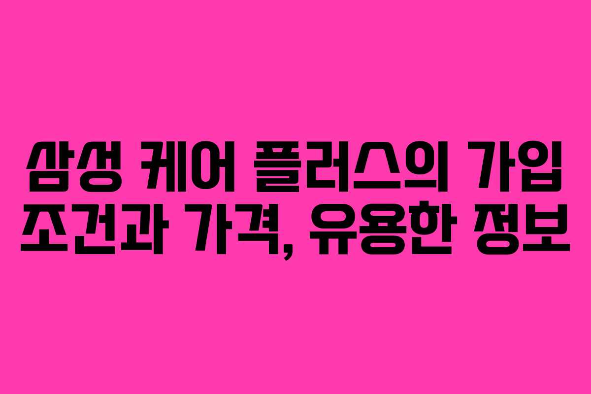 삼성 케어 플러스에 가입하기 위해서는 몇 가지 조건을 충족해야 합니다. 이러한 조건들은 다음과 같습니다: