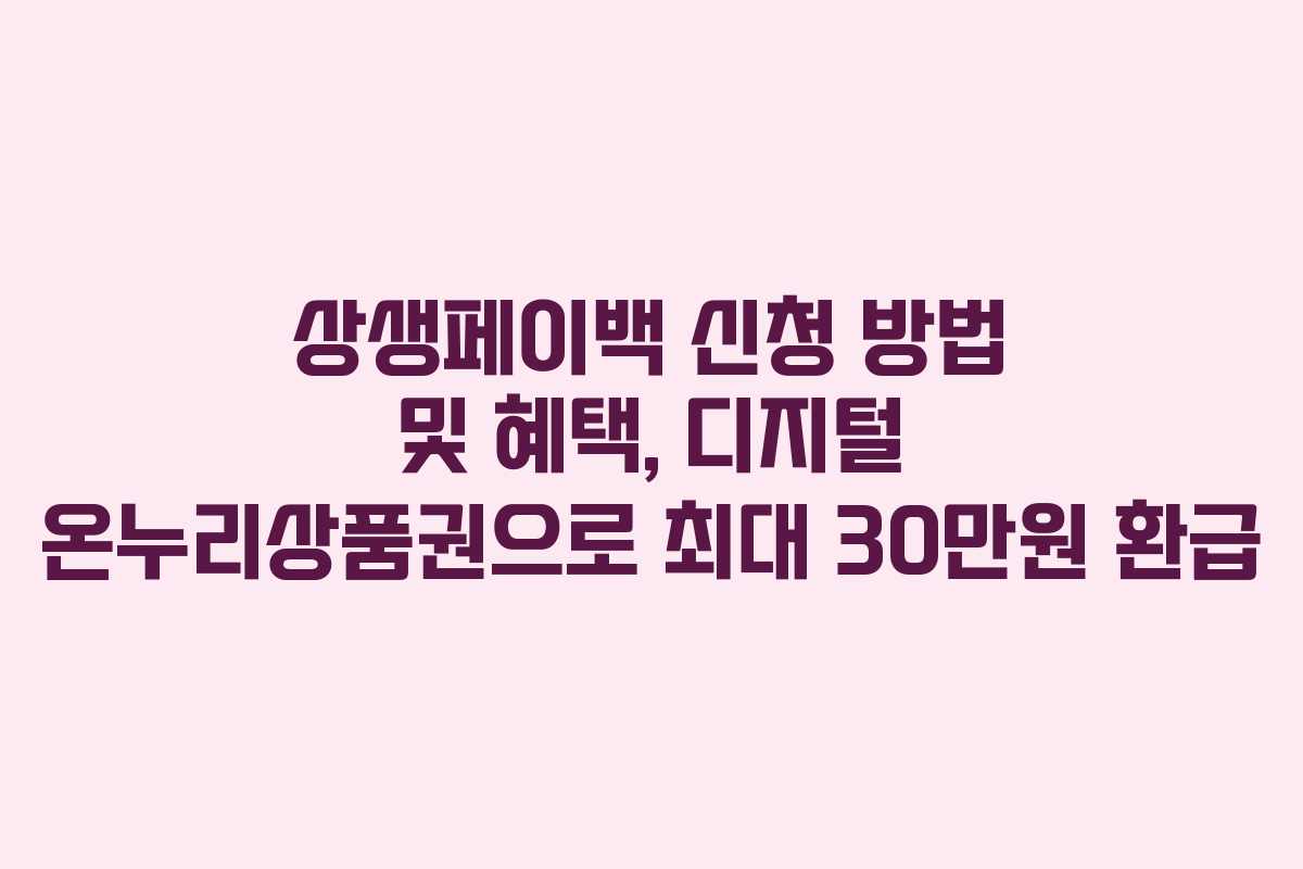 상생페이백은 디지털 온누리상품권을 통해 최대 30만원 혜택을 받을 수 있는 제도입니다. 신청 기간과 자격을 꼼꼼히 확인하고, 상생페이백 누리집에서 신청하여 모든 절차를 이해하고 준비한다면 추가 혜택 및 이벤트를 놓치지 않을 수 있습니다.