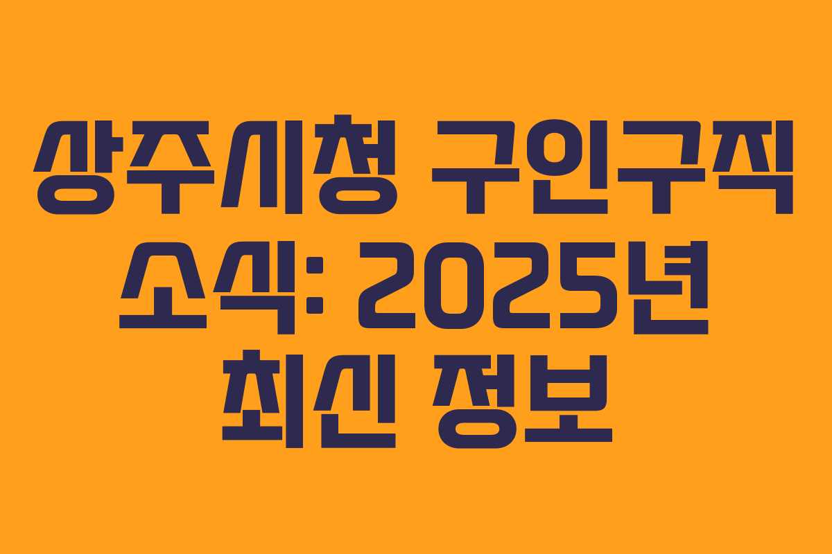 2025년 상주시는 안정적인 일자리를 찾고자 하는 구직자들에게 다양한 기회를 제공합니다. 상주시청과 취업지원센터에서 제공하는 최신 구인구직 정보를 주기적으로 확인하고, 철저한 준비로 취업 성공의 기회를 잡으시길 바랍니다.