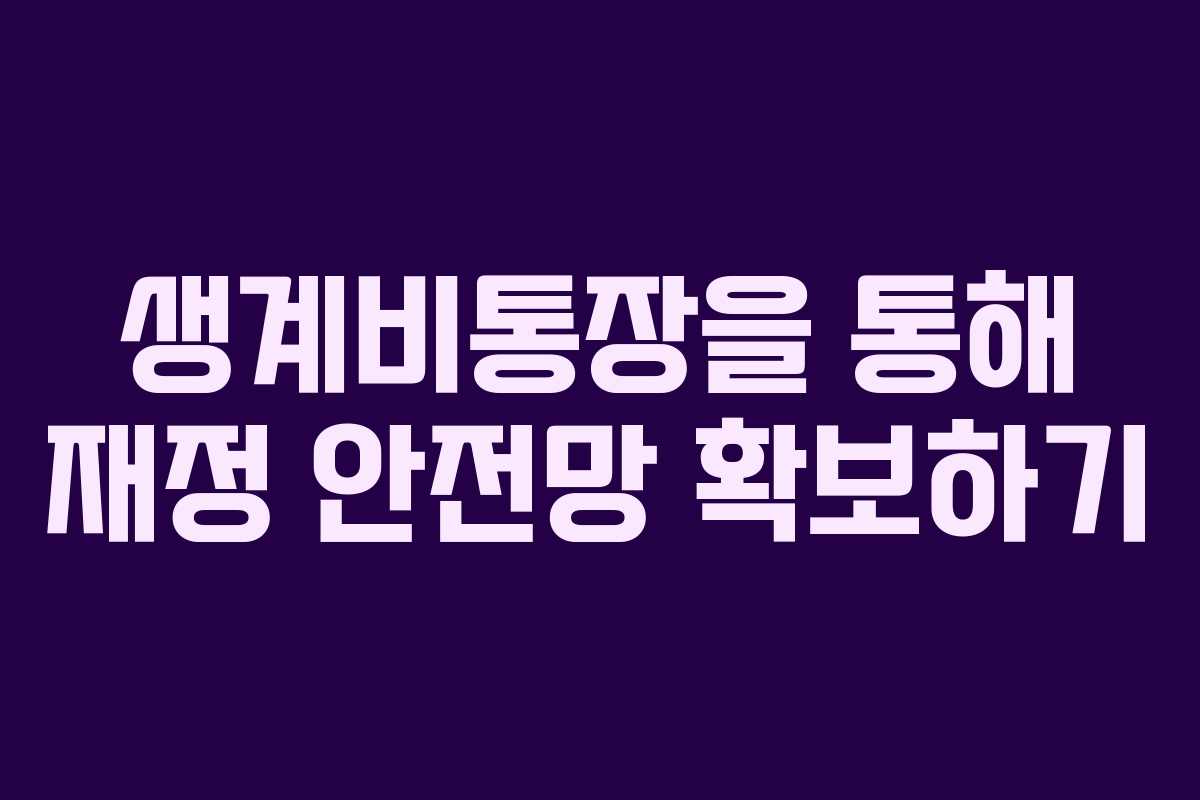 생계비통장의 개념과 중요성