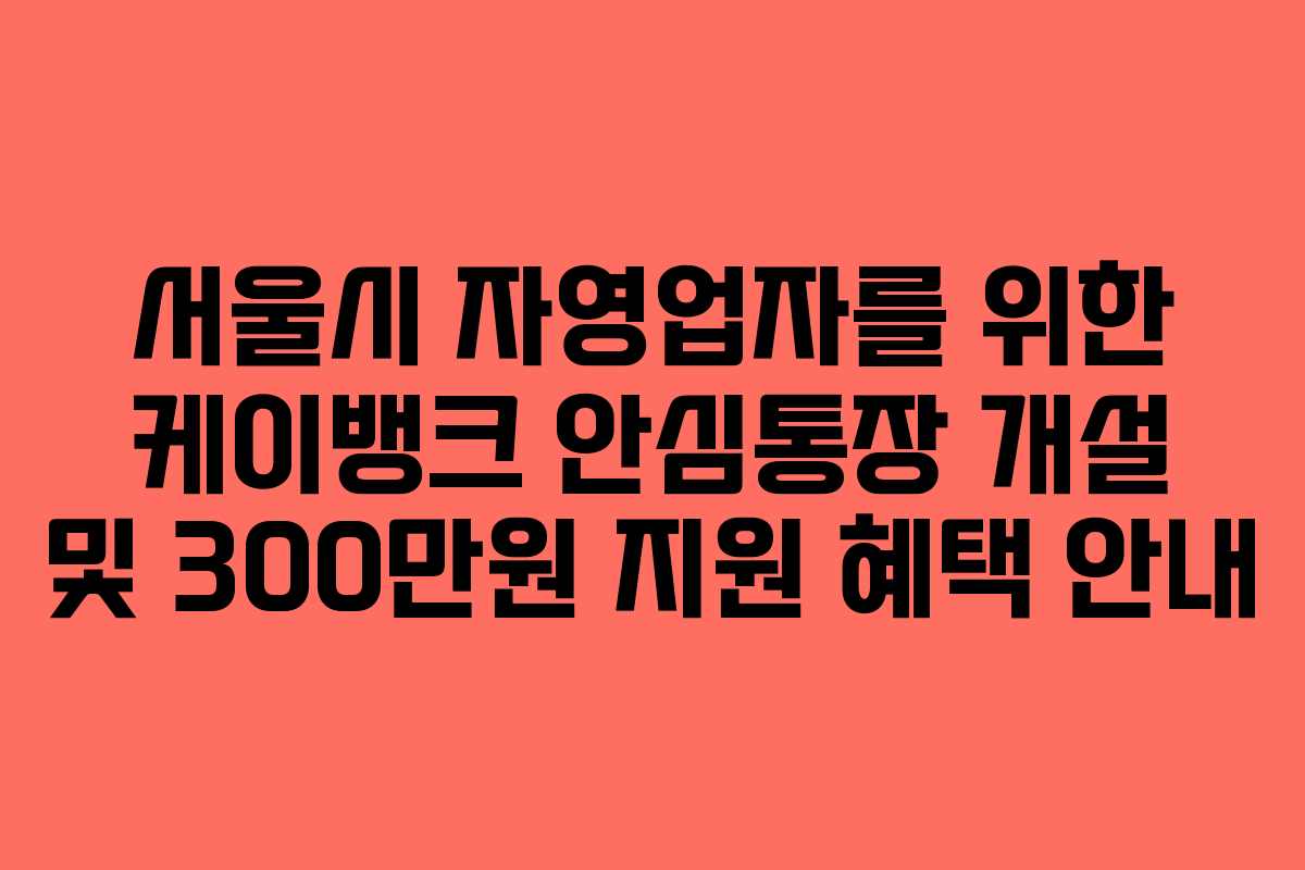 2026년 3월 19일, 서울시가 자영업자를 위해 새롭게 선보이는 케이뱅크 안심통장이 출시됩니다. 이번 통장은 대출 이자 부담을 낮추고, 현금 혜택을 높이는 데 중점을 두고 있습니다. 특히, 케이뱅크는 자영업자들의 재정 부담을 덜기 위해 300만원의 상생지원금을 지급하는 이벤트를 진행합니다. 이번 프로모션은 자영업자들에게 구체적으로 어떤 혜택을 제공하는지 살펴보겠습니다.