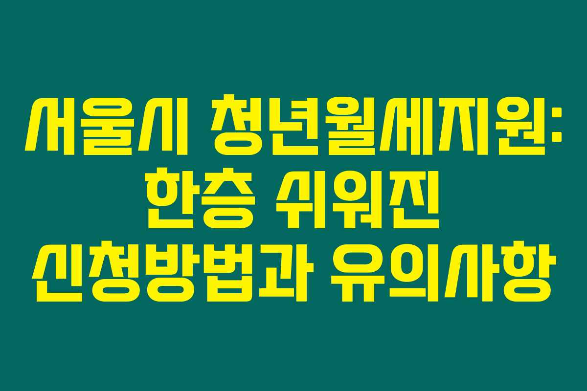 서울시 청년월세지원은 청년들에게 많은 도움을 줄 수 있는 프로그램입니다. 신청방법과 필요서류, 선정기준 등을 잘 숙지하여 주거비 지원 혜택을 누려보세요. 혹시 궁금한 점이 있다면 댓글로 질문해 주시면 좋겠어요!