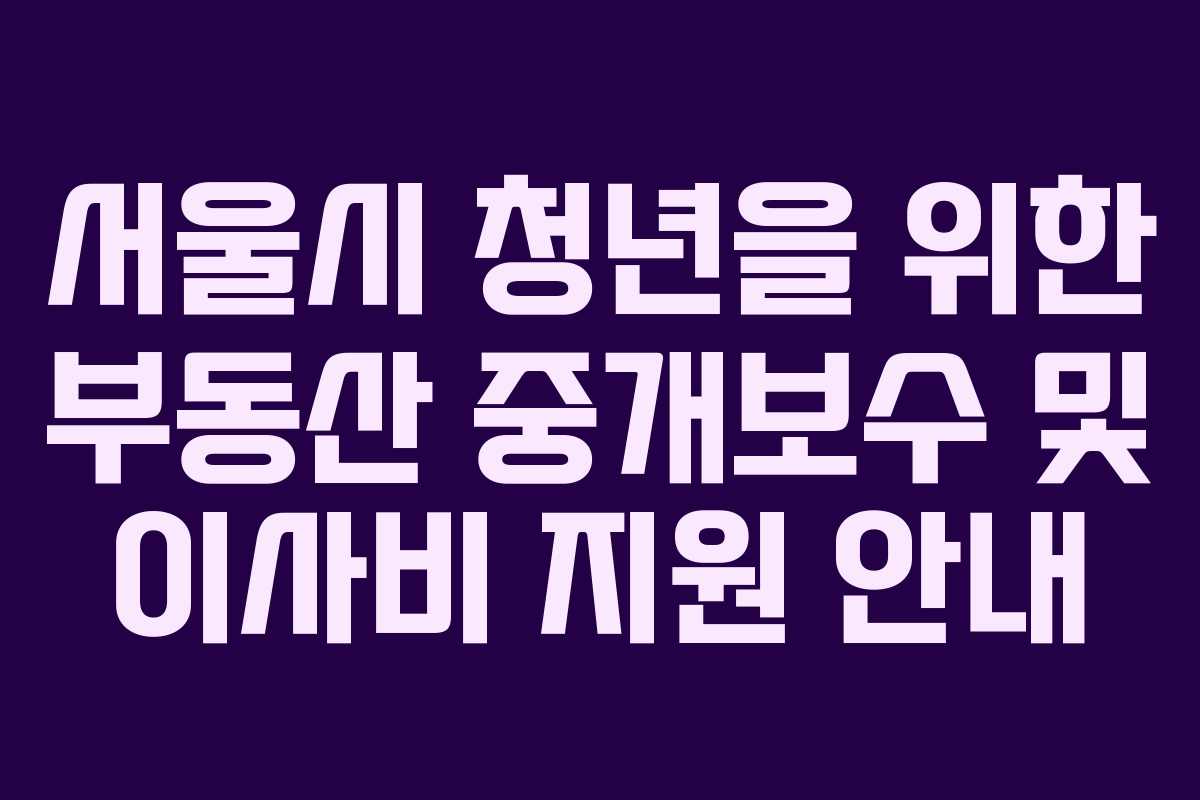 서울시 청년을 위한 부동산 중개보수 및 이사비 지원 안내