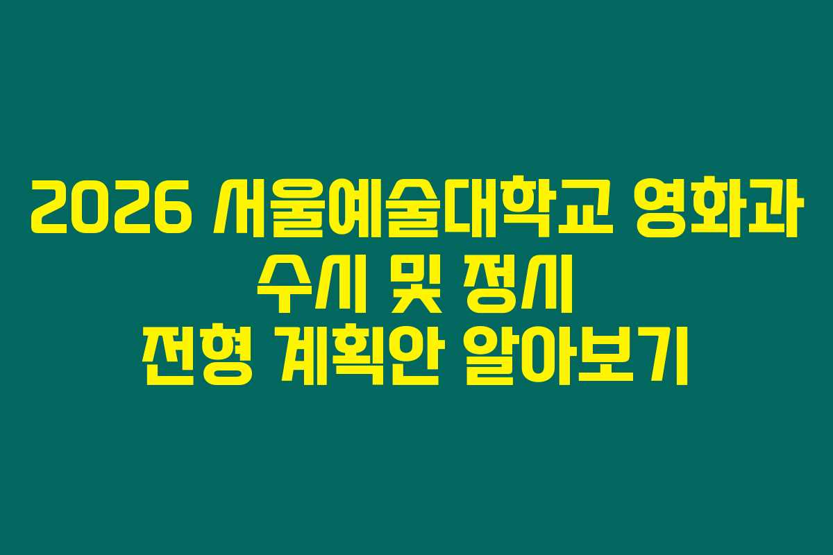 2026학년도 서울예술대학교 영화과 입시를 준비하고 있는 분이라면 이 글 꼭 읽어 보셔야 해요. 영화과의 수시 및 정시 전형 계획이 어떻게 이루어지는지 잘 알면 합격의 가능성을 높일 수 있습니다. 특히 실기 위주 전형에서 구술면접과 이미지 분석까지 필요한 준비 사항을 미리 알고 간다면 훨씬 유리하잖아요. 서울예대 영화과에 대한 구체적인 정보를 아래에서 확인해 보세요!