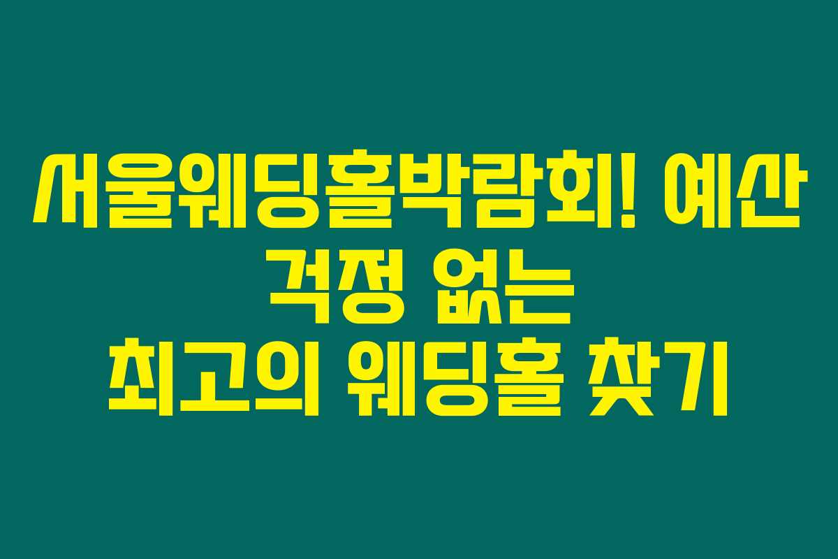 2024년 서울웨딩홀박람회에서 꿈꾸는 결혼식을 위한 완벽한 웨딩홀을 찾아보세요. 서울 웨딩홀 대관료와 식대에 대한 걱정은 이제 그만. 아래를 읽어보시면 본격적인 결혼 준비에 큰 도움이 될 꺼예요!