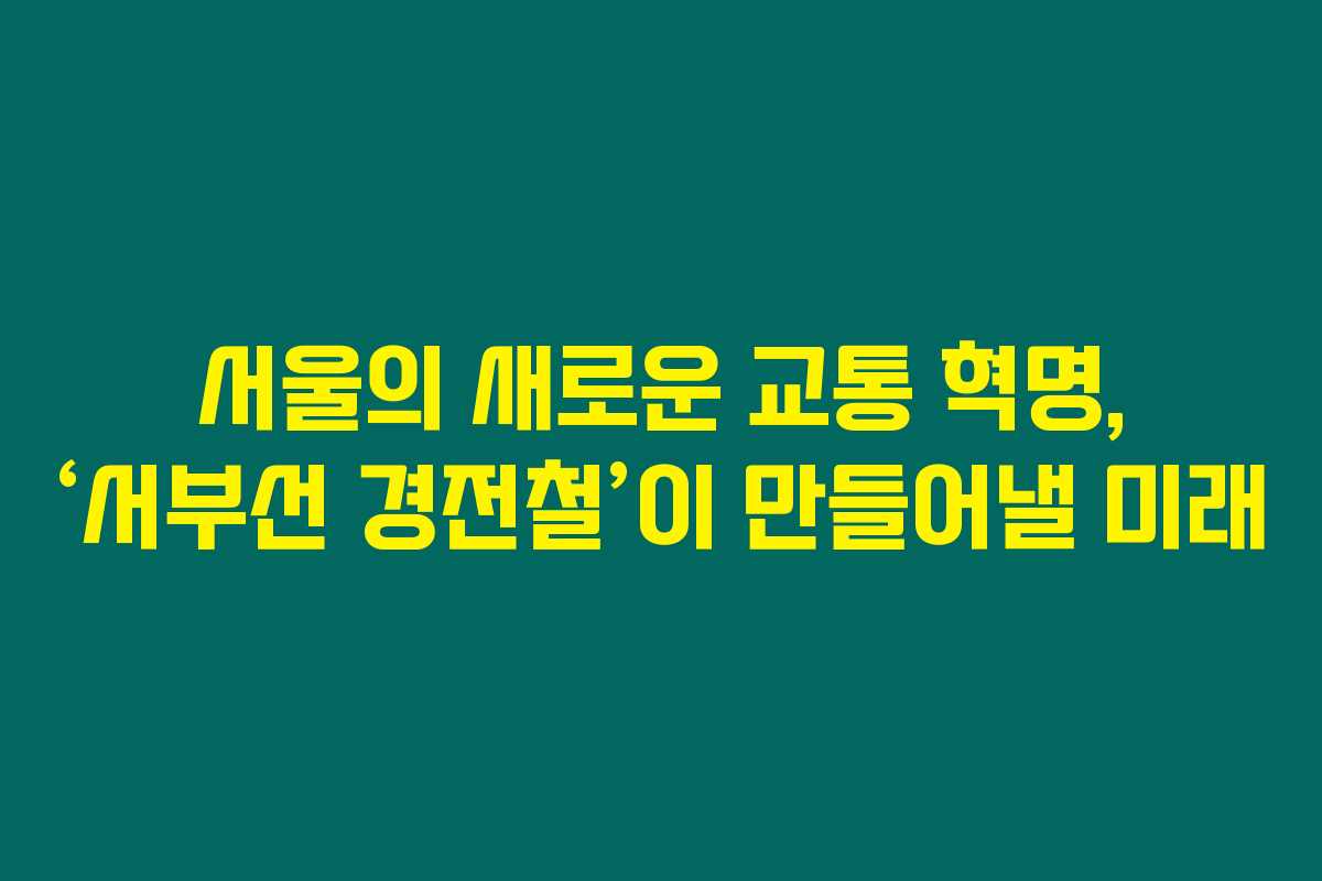 서부선 경전철은 단순한 교통 수단을 넘어, 도시의 인프라와 환경을 바꾸는 중요한 키가 될 것입니다.