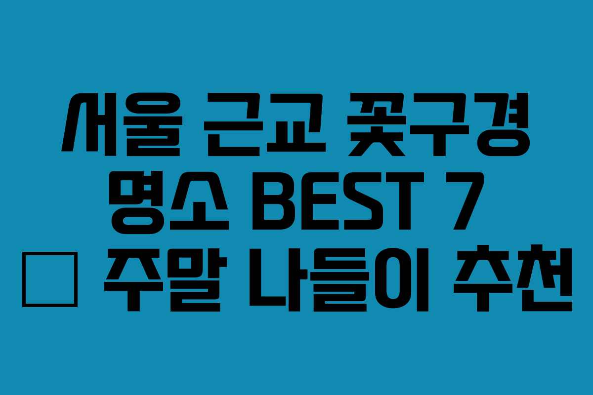 서울 근교 꽃구경 명소 BEST 7 – 주말 나들이 추천