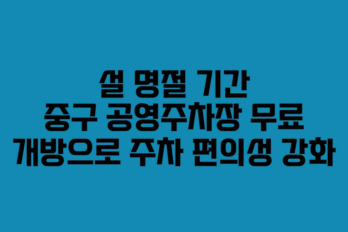 설 명절 기간 동안 무료로 개방되는 중구의 공영주차장을 이용하여 불편함 없이 주차할 수 있도록 하자. 주차 공간을 미리 확인하고, 방문할 장소와의 거리를 고려하여 최적의 주차장을 선택하는 것이 주차의 효율성을 높여줄 것이다.