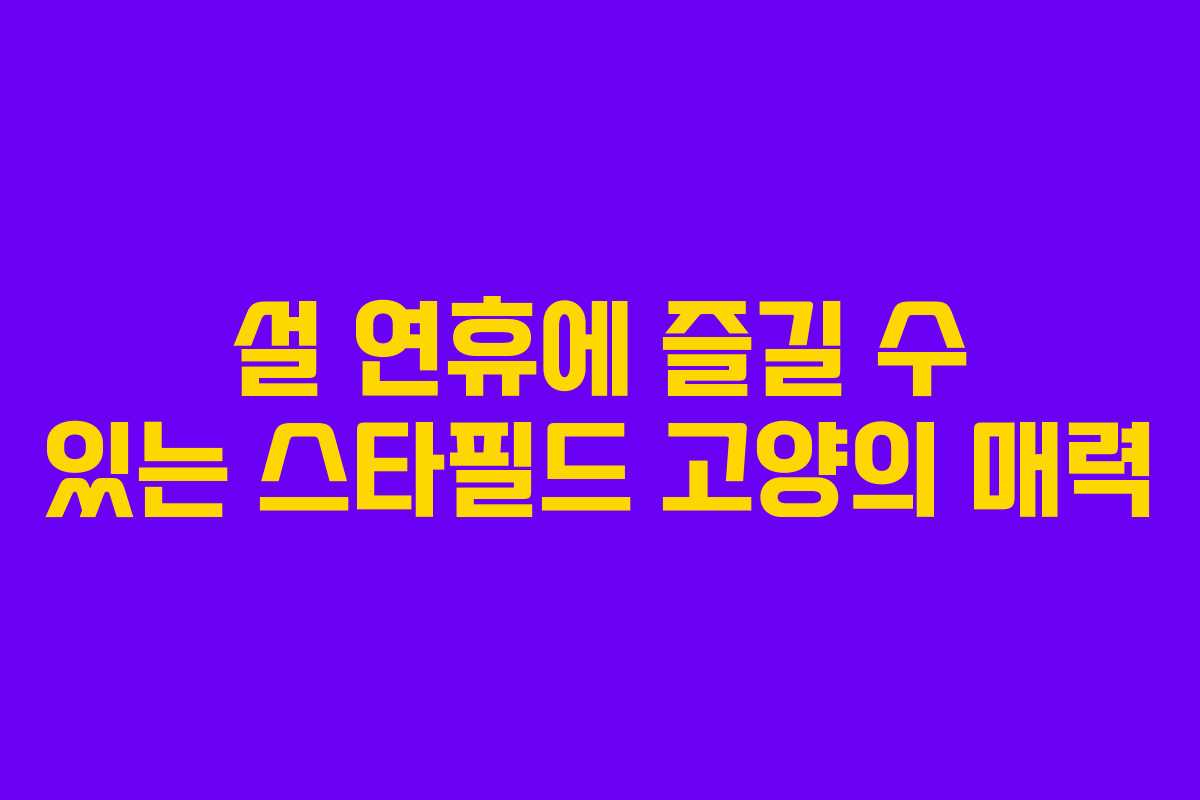 설 연휴는 가족과 함께하는 소중한 시간입니다. 많은 사람들이 이 시기에 고향을 방문하거나 친지와의 만남을 통해 따뜻한 분위기를 느끼고자 합니다. 하지만, 이동에 따른 시간 소모와 고속도로의 정체로 인해 원하는 만큼의 시간을 가족과 함께 보내기 어려운 경우가 많습니다. 이러한 상황에서 가까운 곳에서 즐거운 시간을 보낼 수 있는 장소를 찾는 것이 중요합니다. 스타필드 고양은 다양한 시설과 편의성을 갖춘 공간으로, 가족 단위의 방문객들에게 적합한 장소입니다.