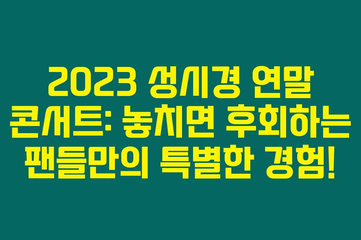 2023 성시경 연말 콘서트: 놓치면 후회하는 팬들만의 특별한 경험!