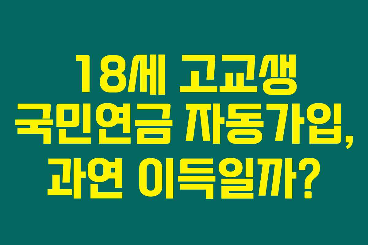 2026년부터 시행되는 법안에 따르면, 국민연금의 자동가입 대상이 만 18세 고교생으로 확대됩니다. 이전에는 소득이 있는 만 18세 이상만이 대상이었으나, 이제는 모든 18세 고교생이 포함됩니다. 이를 통해 정부는 청소년기에 국민연금에 대한 인식을 제고하고, 조기 가입을 유도하고자 하는 목적이 있습니다.