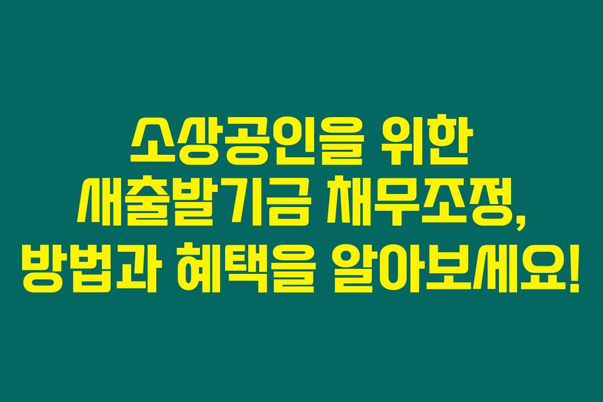 소상공인 새출발기금의 채무조정은 코로나19로 피해를 입은 소상공인들에게 부채를 경감해주는 프로그램입니다. 이는 주로 원금 조정, 금리 감면, 분할 상환 방식으로 이루어집니다.