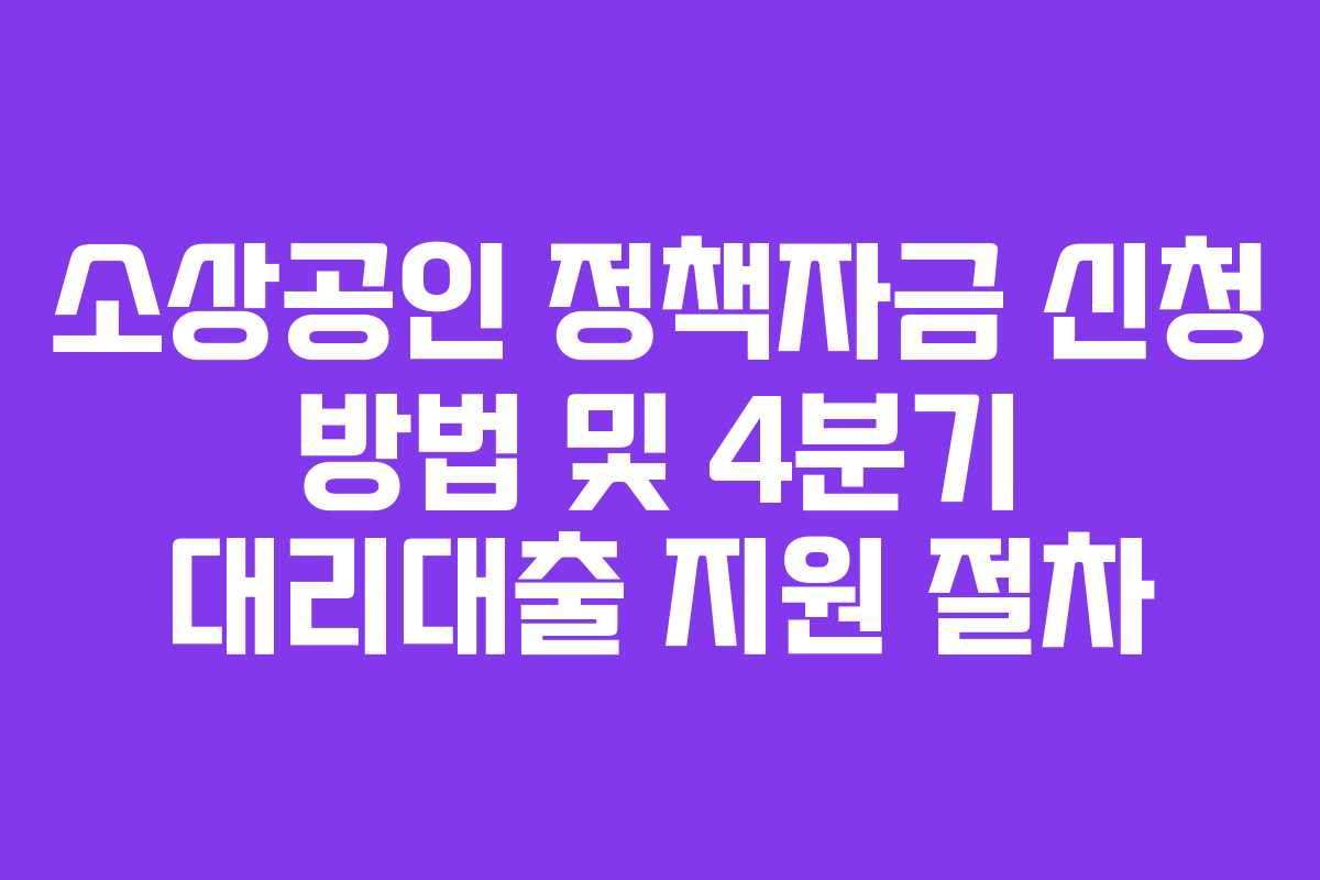 소상공인 정책자금은 소상공인들이 사업을 운영하며 겪는 자금난을 덜어주기 위해 마련된 지원 프로그램입니다. 특히 4분기에는 대리대출 지원금이 제공되어 많은 소상공인들이 도움을 받을 수 있습니다. 이번 글에서는 소상공인 정책자금의 신청 방법과 대리대출 지원 절차를 자세히 알아보겠습니다.