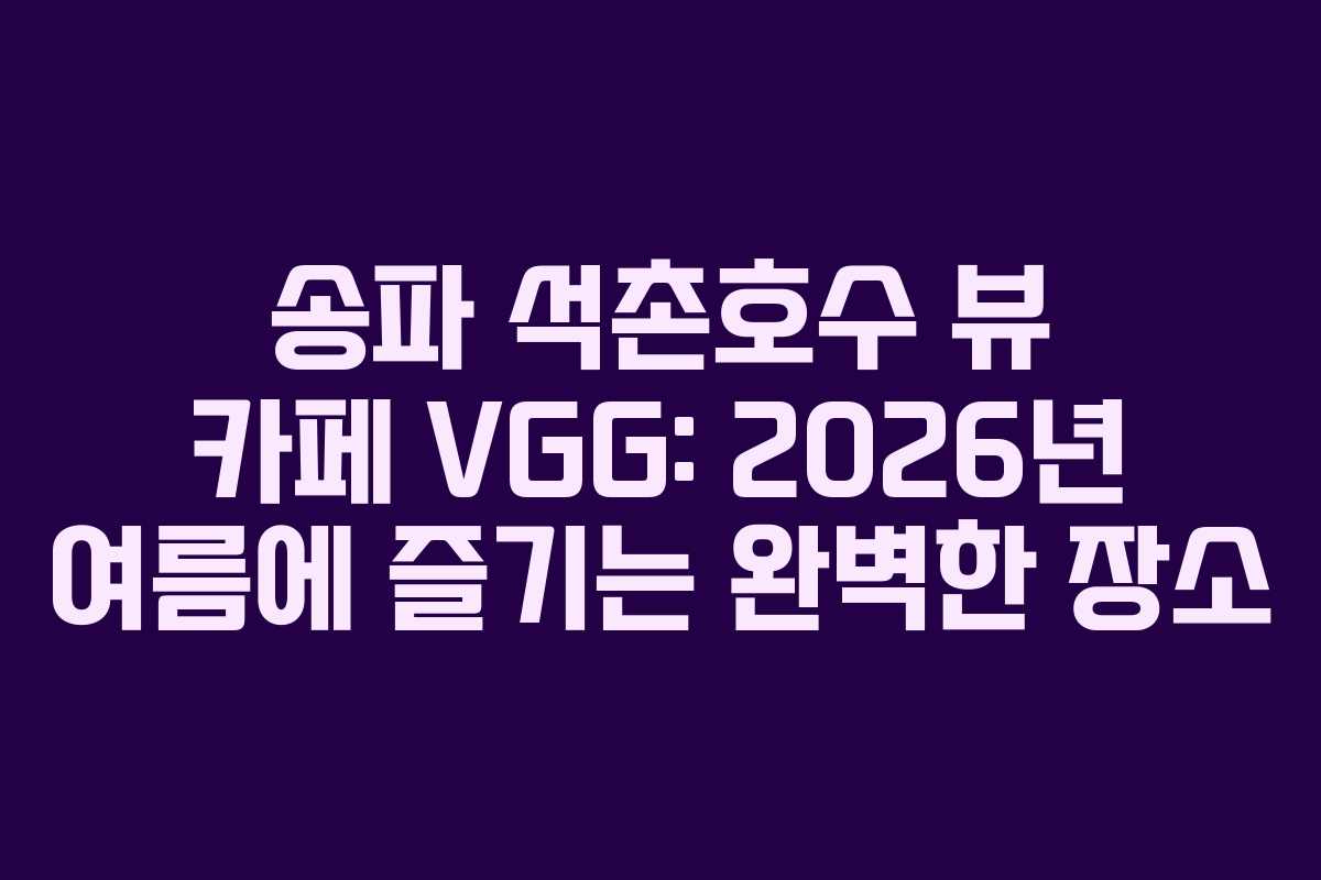 송파 석촌호수 뷰 카페 VGG: 2026년 여름에 즐기는 완벽한 장소