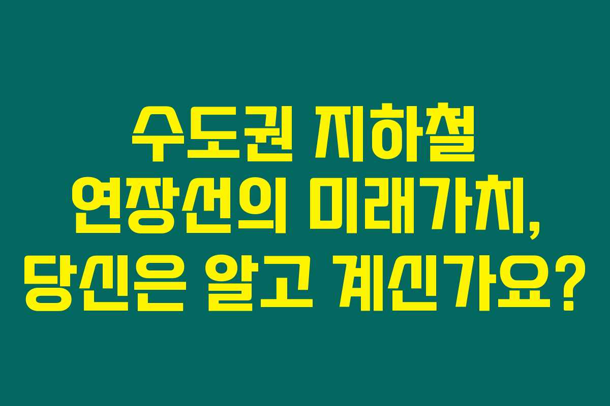 제가 직접 리서치한 바로는 수도권의 지하철 연장선들은 부동산 투자에 있어 매우 중요한 요소라고 생각해요. 교통망이 확장됨에 따라 지역 가치가 높아지고, 부동산 수요도 증가하기 때문에입니다. 그래서 오늘은 수도권에서 진행 중인 지하철 연장선을 중심으로 알아보려 해요. 아래를 읽어보시면 최신 정보와 함께 미래 가치를 판단하는 데 큰 도움이 될 것입니다.