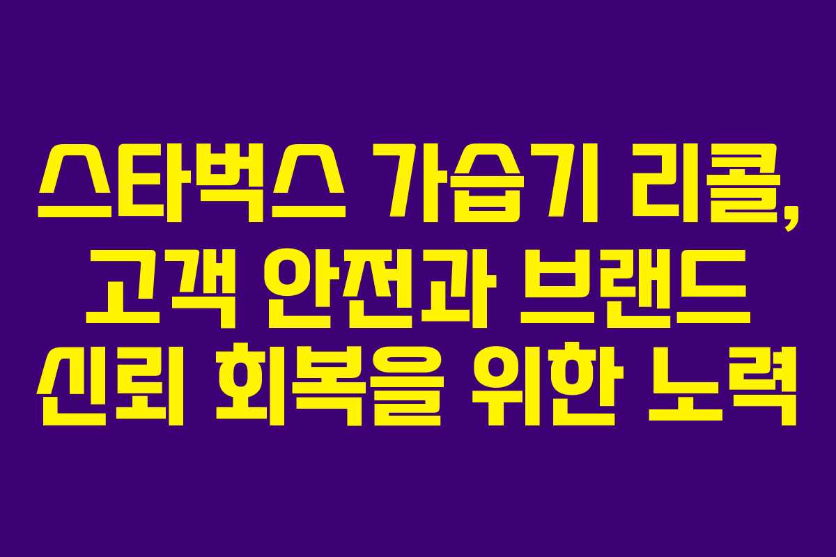 스타벅스는 최근 리콜 사태를 통해 고객의 안전과 브랜드 신뢰를 동시에 고려한 조치를 취하고 있다. 고객의 안전을 최우선으로 한 이번 리콜은 단순히 제품 회수를 넘어, 브랜드 이미지와 소비자 신뢰 회복을 위한 중요한 계기가 될 수 있다. 스타벅스는 향후 이러한 사태가 재발하지 않도록 더욱 철저한 품질 관리와 소비자 소통을 강화해야 할 것이다.