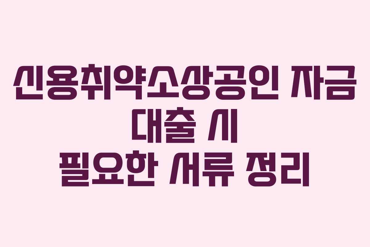신용취약소상공인은 신용 점수가 낮거나 사업 이력이 짧아 대출을 받기 힘든 소상공인을 말합니다. 이러한 상황에서는 대출 승인 과정이 복잡할 수 있어, 필요한 서류를 철저히 준비하는 것이 필수적입니다. 실제로 서류가 부족한 경우 승인 지연이나 거절의 위험도 존재하므로, 준비에 만전을 기해야 합니다.