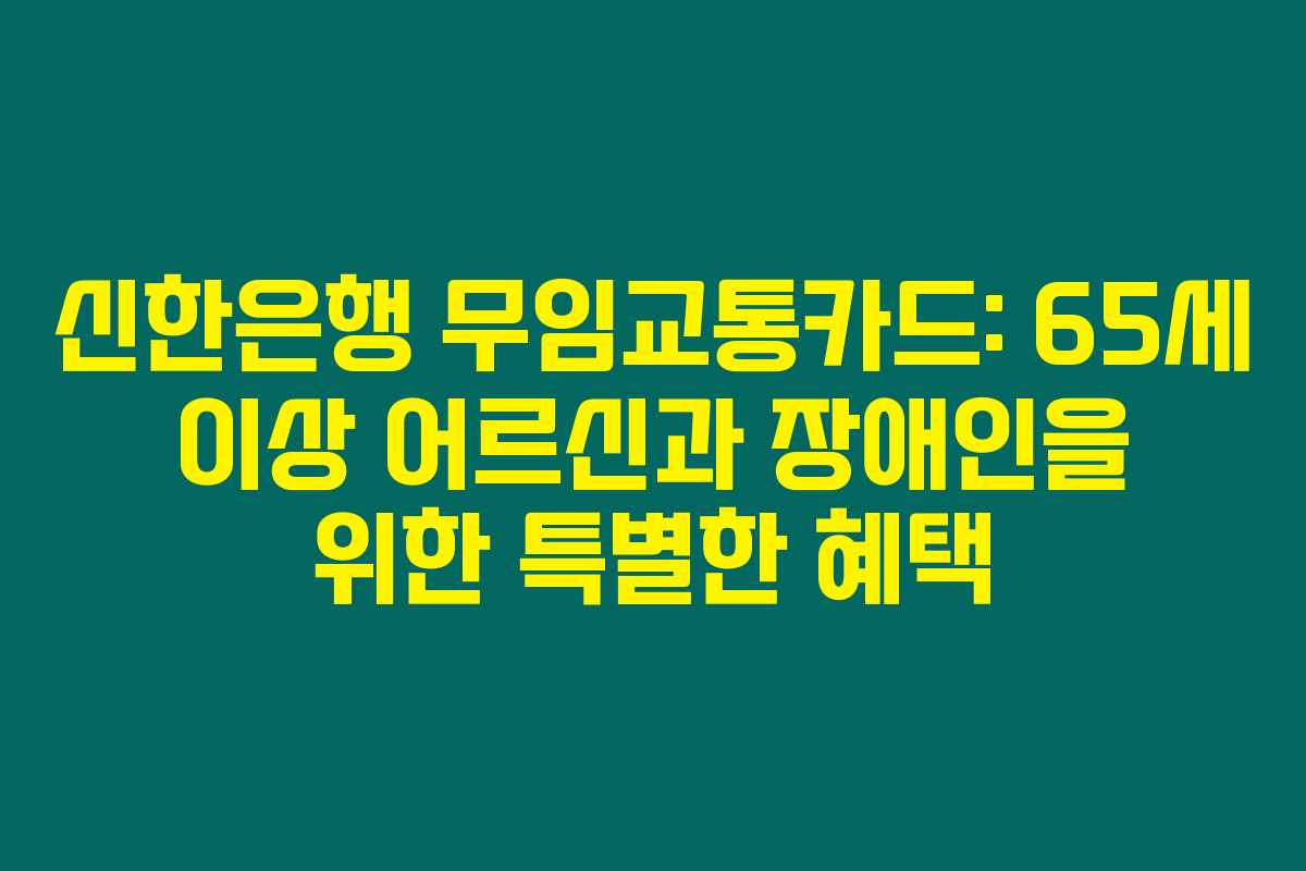 신한은행 무임교통카드는 65세 이상 어르신, 장애인, 유공자 분들에게 정말 유익한 서비스입니다. 이 카드를 통해 무료 대중교통 혜택을 누리면 여행이나 외출이 더 수월해 질 거예요. 자주 활용해서 더 많은 혜택을 누리시길 바랍니다.