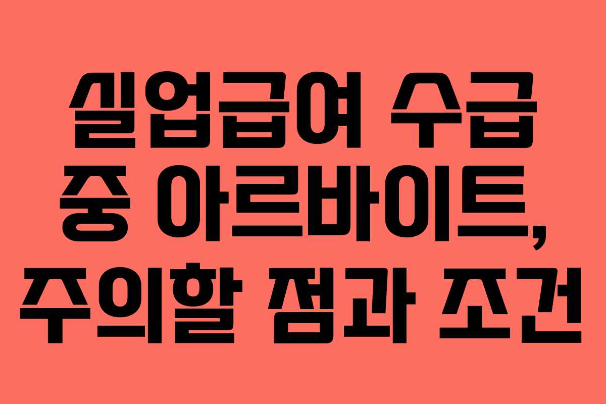 실업급여를 받는 동안 아르바이트를 하려면 월 60시간 미만으로 근무하거나 3개월 미만의 단기 근로를 해야 한다. 이 외에도 일용근로자로서의 근로는 제한이 있다. 월 80만 원 이상의 계약을 체결하고 일하는 경우에는 이러한 근로가 취업으로 간주되어 실업급여 수급 조건에 해당하지 않는다. 따라서 아르바이트를 계획할 때에는 근로 시간과 기간을 잘 계산해야 한다.