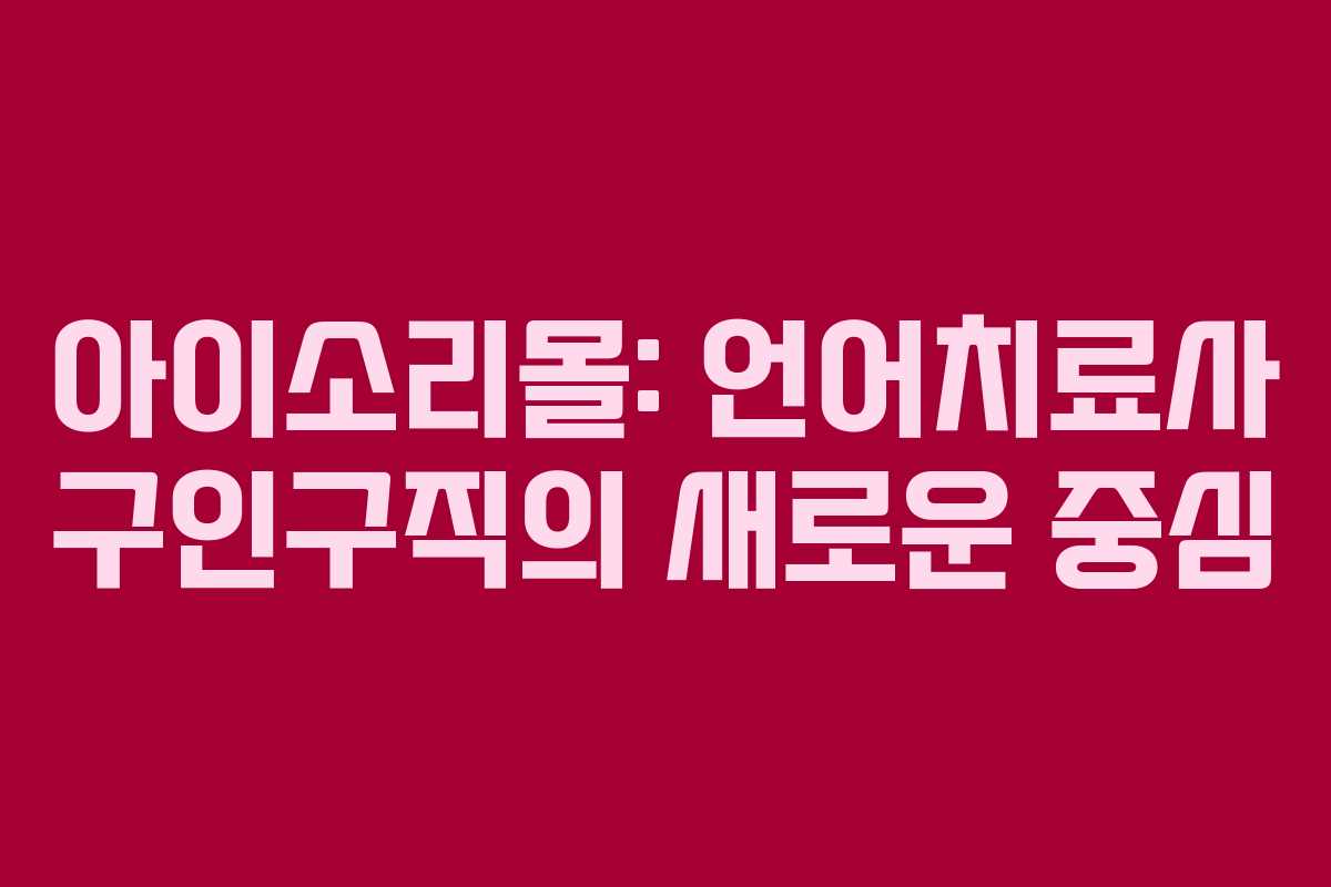 최근에도 언어치료사 관련 구인정보를 찾는 분들이 많습니다. 그 중에서도 아이소리몰은 언어치료사 채용에 유용한 대표적인 사이트로 주목받고 있습니다.