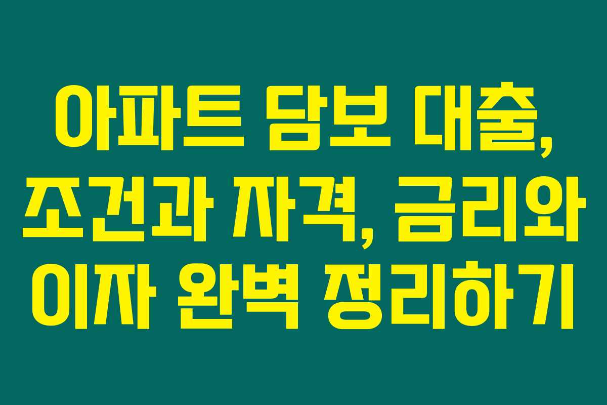 아파트 담보 대출은 안정적이고 큰 금액의 자금을 필요로 하는 이들에게 유용한 금융 솔루션이에요. 하지만 많은 사람들이 조건, 자격, 그리고 금리에 대해 헷갈려 하죠. 바로 이 글에서, 아파트 담보 대출에 대한 모든 것을 해결해 드릴게요. 아래를 읽어보시면 아파트 담보 대출의 필수 정보를 놓치지 않게 될 거예요!