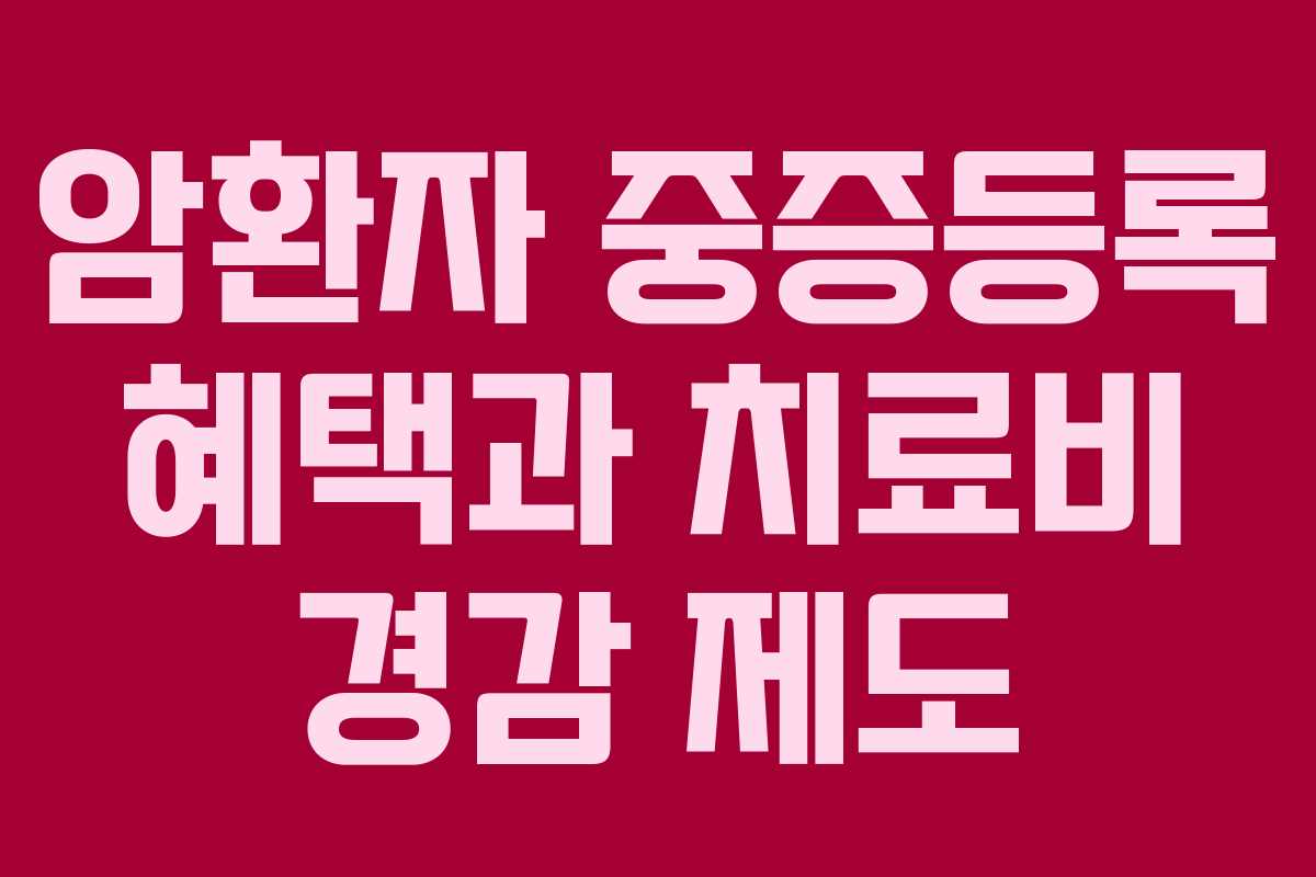 암환자 중증등록 혜택은 암 치료에 필요한 의료비를 경감하고, 암 환자들이 보다 나은 치료 환경을 제공받도록 하는 제도입니다.