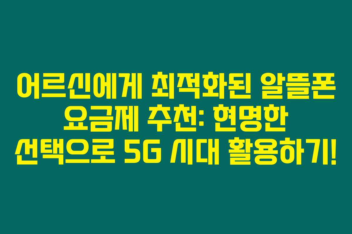 제가 직접 체크해본 바로는, 요즘 어르신들이 스마트폰이나 태블릿을 활용하는 경우가 급증하면서 적절한 요금제를 찾는 것이 매우 중요해졌습니다. 특히, 알뜰폰의 저렴한 요금제를 통해 경제적인 부담을 줄이면서도 데이터 사용이 필요한 어르신들을 위한 5G 요금제에 대한 정보가 부족했거든요. 아래를 읽어보시면, 선불 요금제, 시니어 전용 요금제 및 태블릿 요금제를 포함한 다양한 선택지를 소개드릴게요.