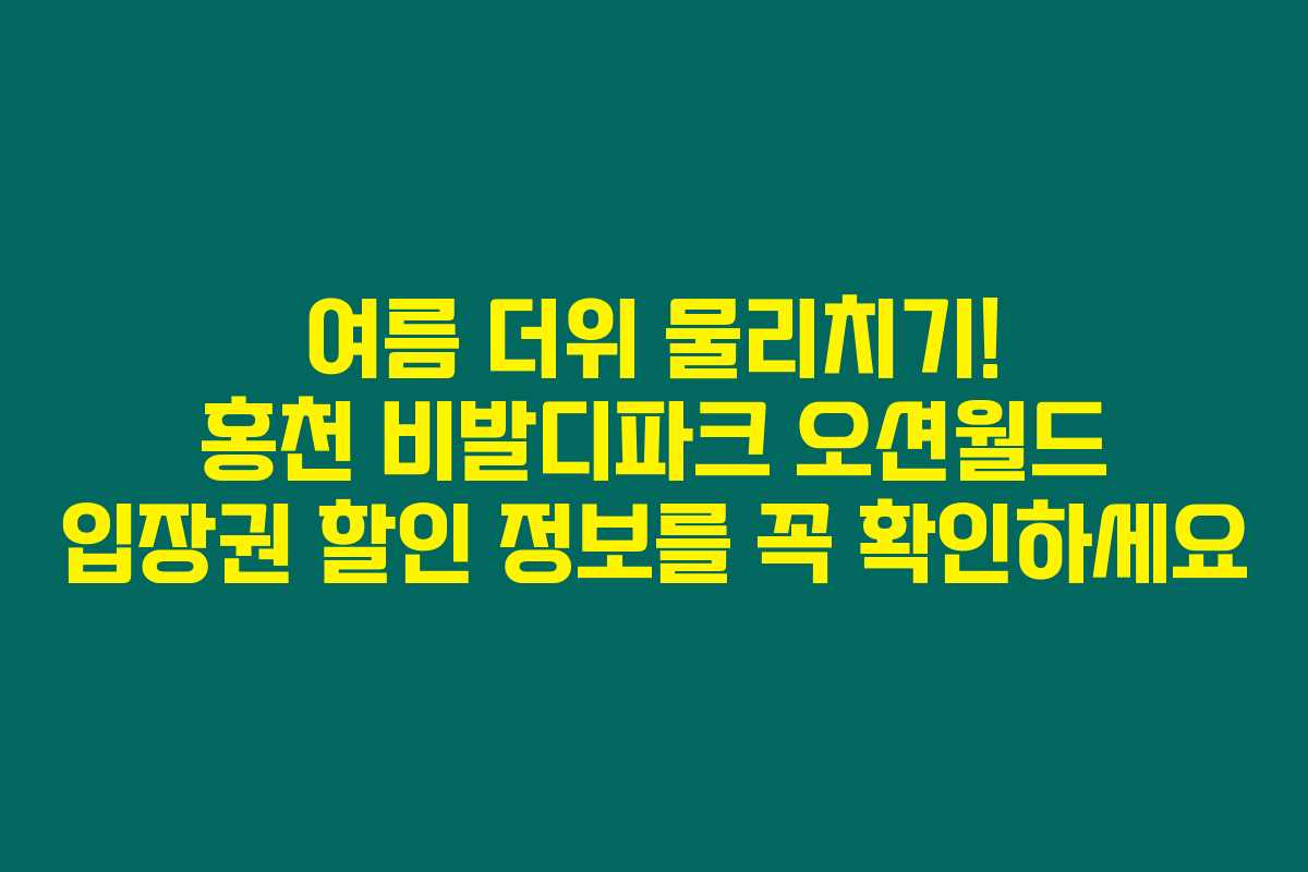 여름 더위로 인한 불쾌지수를 날려버릴 놀라운 물놀이 천국이 여기 있어요! 홍천의 비발디파크 오션월드는 이집트의 오아시스를 모티브로 한 대형 워터파크로 여름마다 수많은 방문객들을 사로잡고 있답니다. 하지만 입장요금이 만만치 않다는 거 알고 계셨나요? 그런 걱정은 이제 그만! 아래를 읽어보시면 오션월드의 입장권을 할인받고, 신나는 즐길 거리도 놓치지 않을 팁을 모두 알려드릴게요.