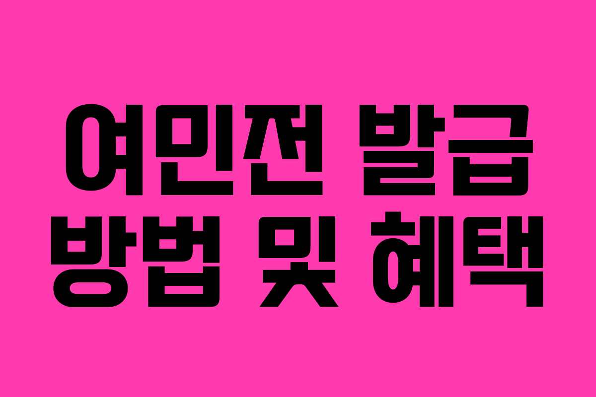 본인 명의의 스마트폰에 여민전 앱을 설치하고 회원가입을 진행해야 합니다. 이후 하나카드 또는 농협카드에서 여민전 카드를 신청할 수 있습니다. 카드를 신청한 후에는 2~3일 내로 우편으로 배송받게 됩니다.