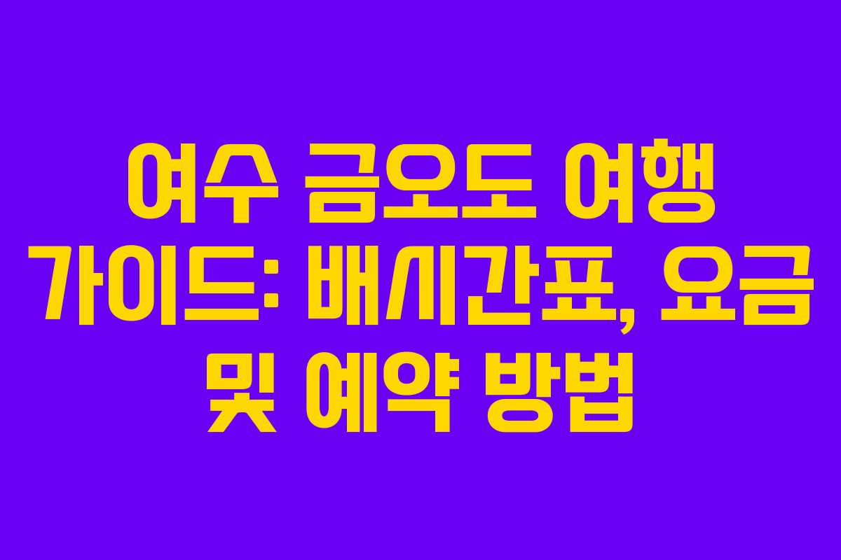 여수 금오도는 전라남도 여수시에 위치한 아름다운 섬으로, 트레킹과 낚시를 즐기는 여행객들에게 인기가 많습니다. 이번 글에서는 금오도로 가는 방법과 배시간표, 요금, 예약 방법, 물때 정보를 상세히 안내하겠습니다.