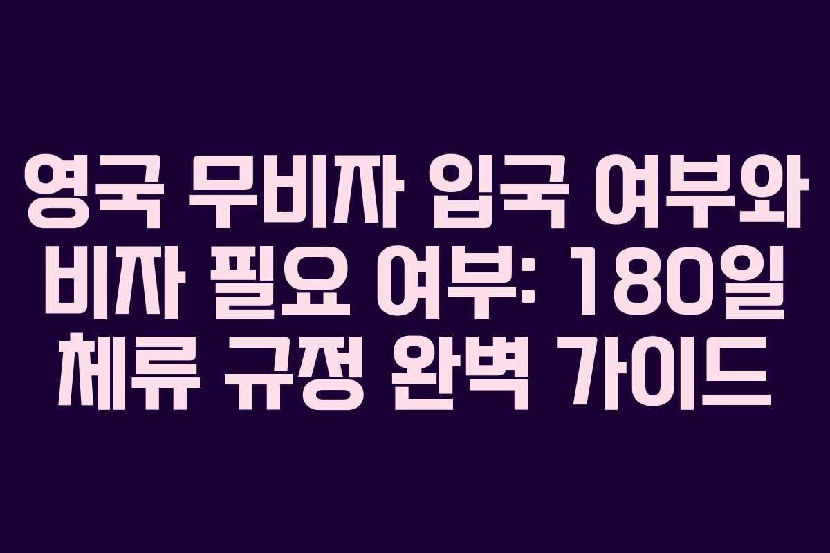 한국 여권으로 영국 방문 시 비자 여부를 빠르게 확인하고, 180일 무비자 체류 가능 기간과 예외 상황, 입국 준비를 한눈에 정리했습니다. 최근 정책 변화도 함께 살펴보며 계획 수립에 도움이 되도록 구성했습니다.